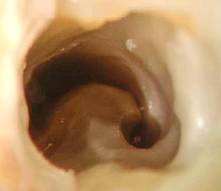 C - shaped canals are generally seen in mandibular second molars that appear to have a single, large root. The access penetration is quite deep. You will also notice - if the tooth is vital - a large amount of bleeding. In a transverse section, the shape of this canal is observed as the letter C. The presence of a fin or web connecting the individual root canals is another anatomic feature.